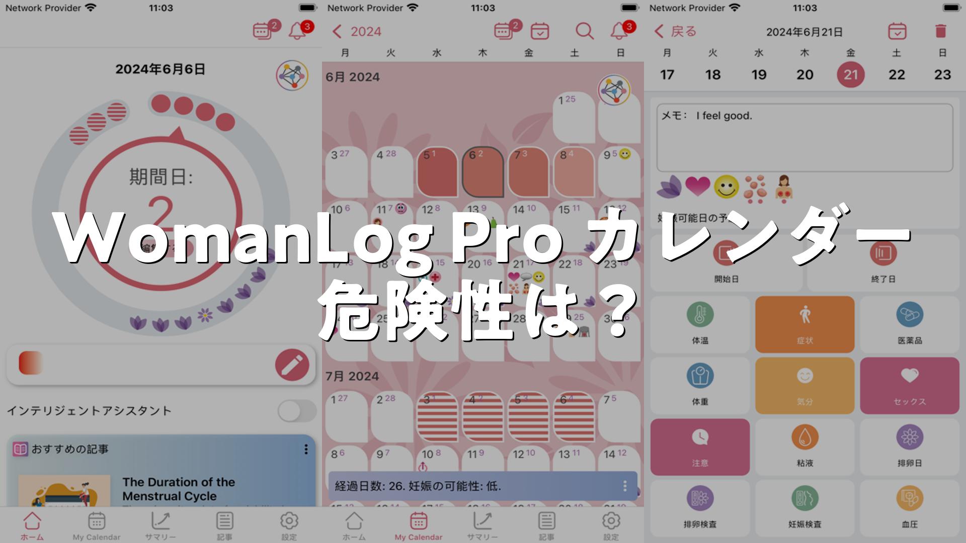 WomanLog Pro カレンダーの口コミ・危険性は?ついてまとめました