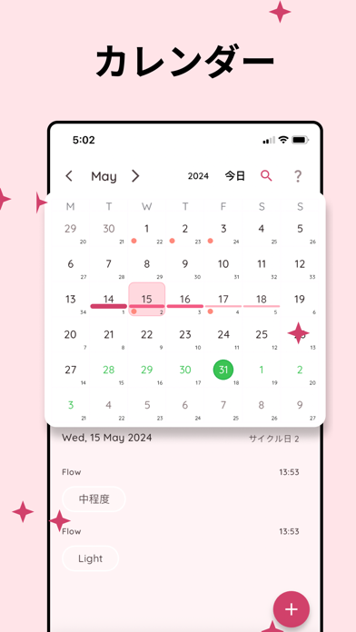 Lifeは、生理日トラッキングや排卵日予測、気分や症状の記録までできるシンプルかつ多機能な生理管理アプリです。使いやすい縦型カレンダーや多彩な通知設定、HealthKit連携やパスコードロックなど、日常の体調管理を手軽に続けられる設計になっているのが魅力。妊活や生理不順の管理にも対応しており、自分の周期を見やすく残しておけるアプリです。